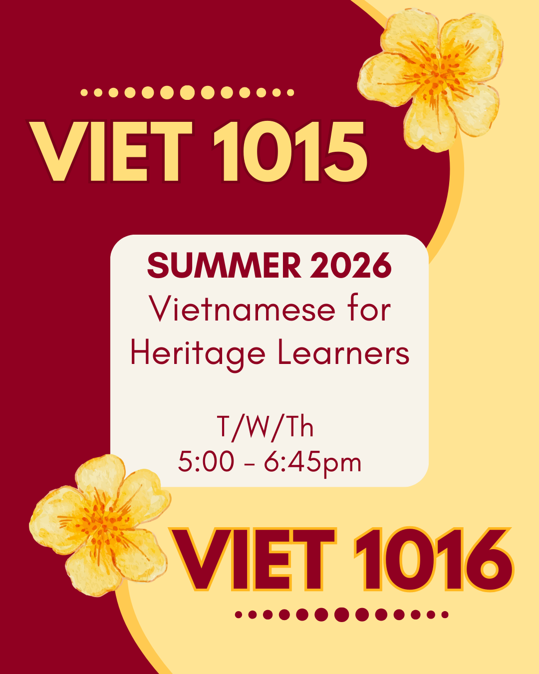- VIET 1015 – Vietnamese for Heritage Learners I